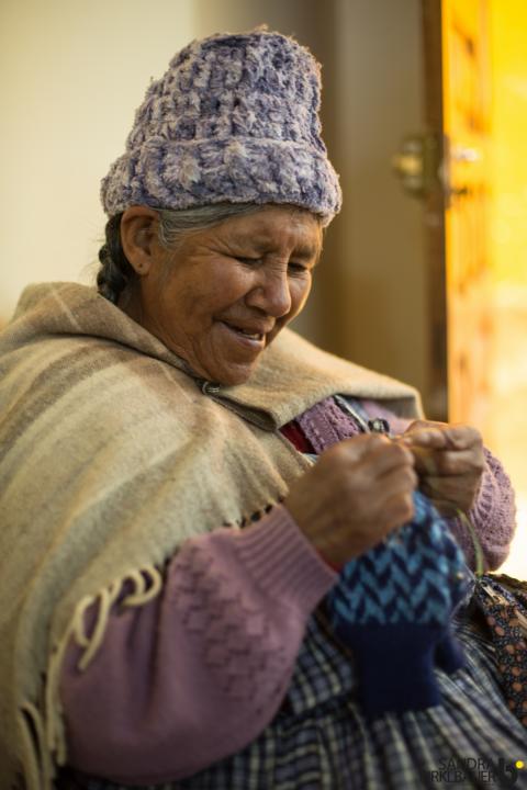 - Eine Gruppe von 40 Frauen fertigt Strickwaren an, die in deutschen und italienischen Weltläden verkauft werden.